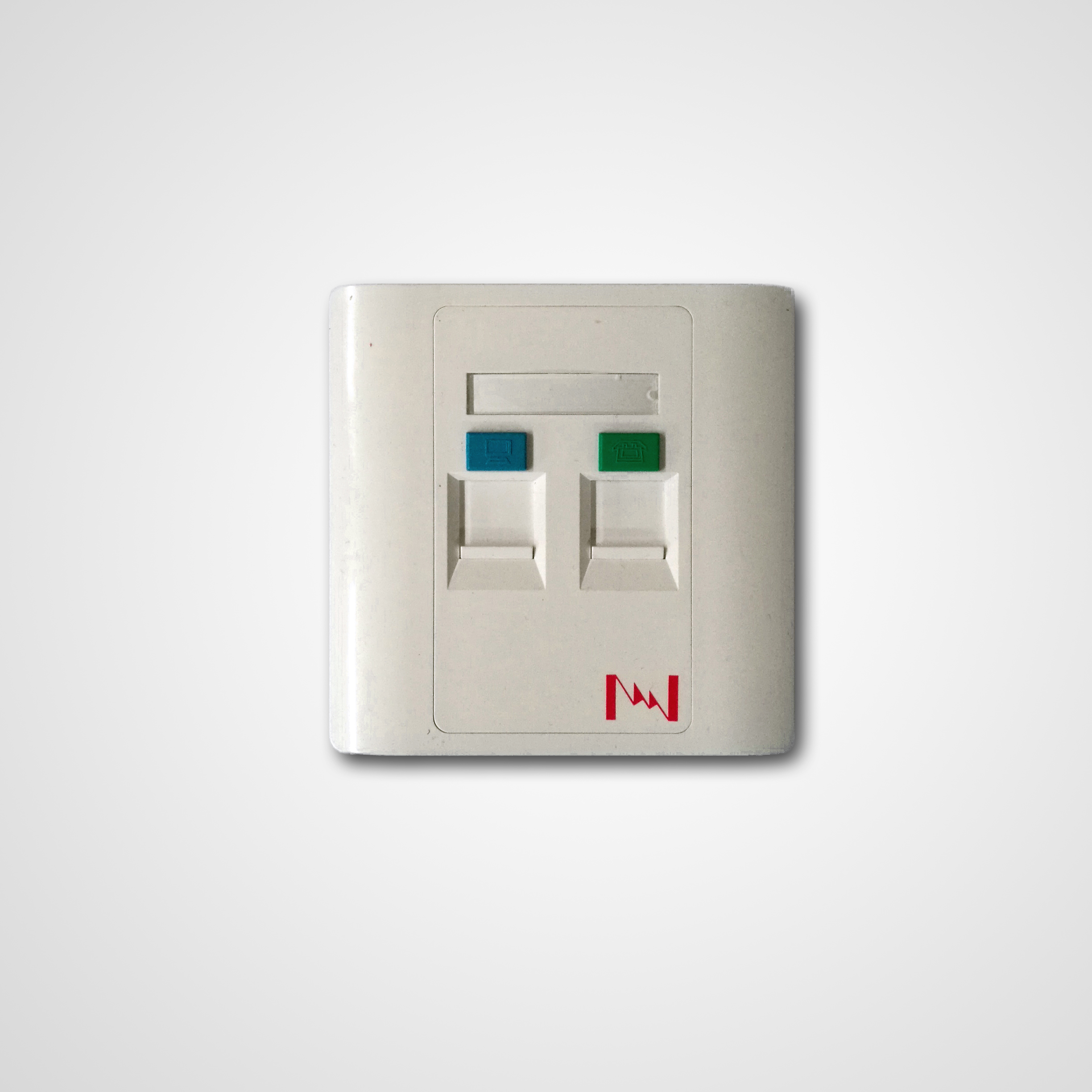 适合Keystone卡口数据模块、语音模块,应用于工作区布线子系统。 It is suitable for Keystone data module and voice module, and is applied to the cabling subsystem of workspace. 采用防火阻燃ABS材料,防撞、阻燃抗冲击,符合UL94V-0等级。 Fireproof and flame-retardant ABS materials are adopted, it makes it collision resistant, flame retardant and anti shock, conform to UL94V-0 grade. 所有插口带有防尘盖,防止灰尘进入。 All the jacks have a dust cover to prevent dust from entering. 上下滑动防尘盖设计,方便用户使用和维护。 Up and down sliding dust cover design, convenient for users to use and maintain. 带有可替换计算机、电话标识。 It is equipped with a double blue network port logo and a green phone port logo. 标签框带有透明有机塑料挡片,方便编号管理和维护管理。 The label frame has transparent organic plastic block, which is convenient for serial number management and maintenance management. 里外双层设计,外层履盖螺丝孔,美观、大方。 Inside and outside the double deck design, the outer cover screw hole, beautiful, generous. 信息面板兼容所有日线信息模块和语音模块。 The information panel is compatible with all the NISSEN's information modules and voice modules.