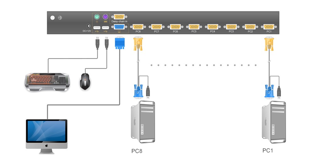 XD1008 KVM切换器可直接连接8台服务器。支持最高分辨率可达2048*1536。